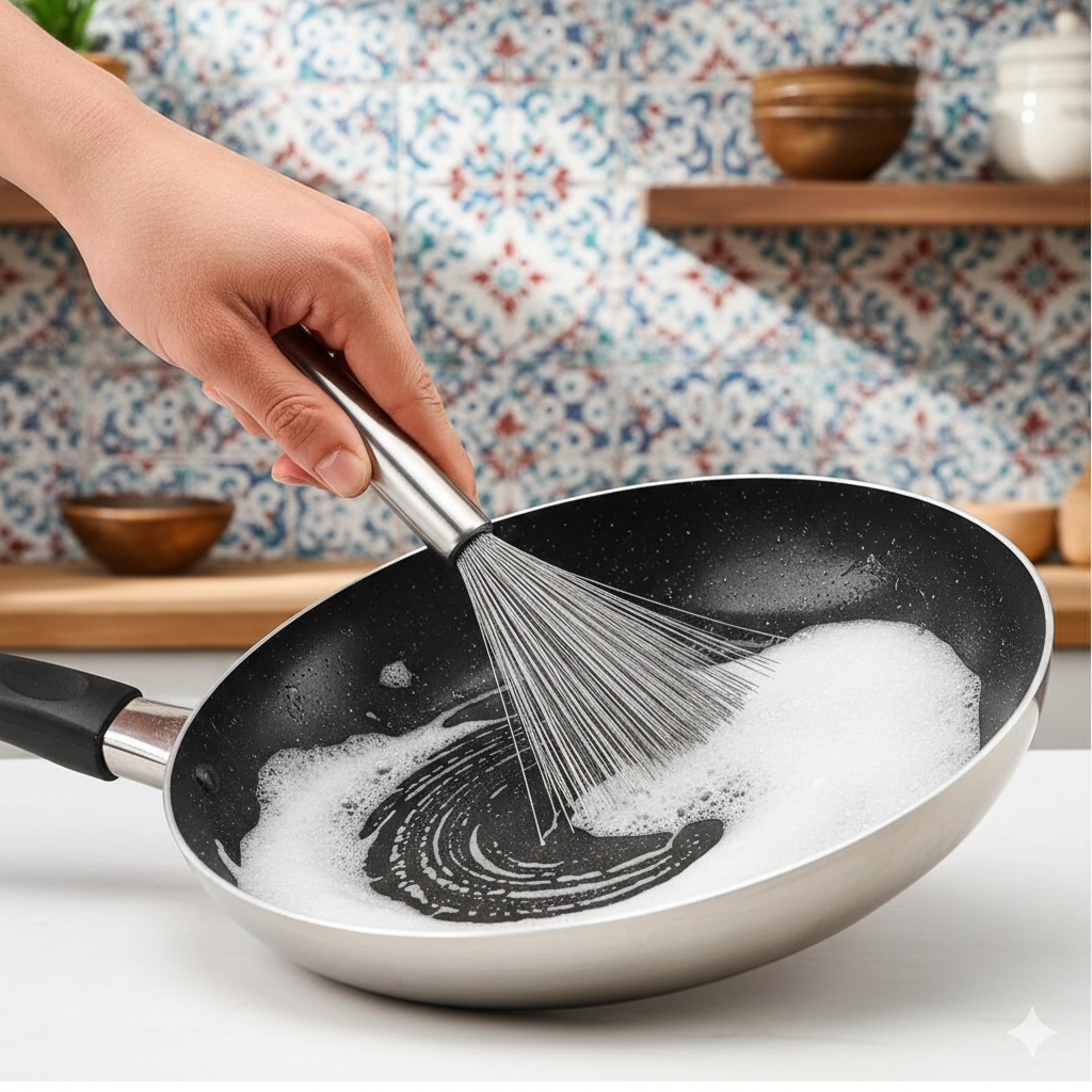 • 🧼 Kiri Tutmayan Tasarım: Yağ ve kalıntıları güçlü şekilde söker, üzerinde pislik biriktirmez ve kolayca durulanır.